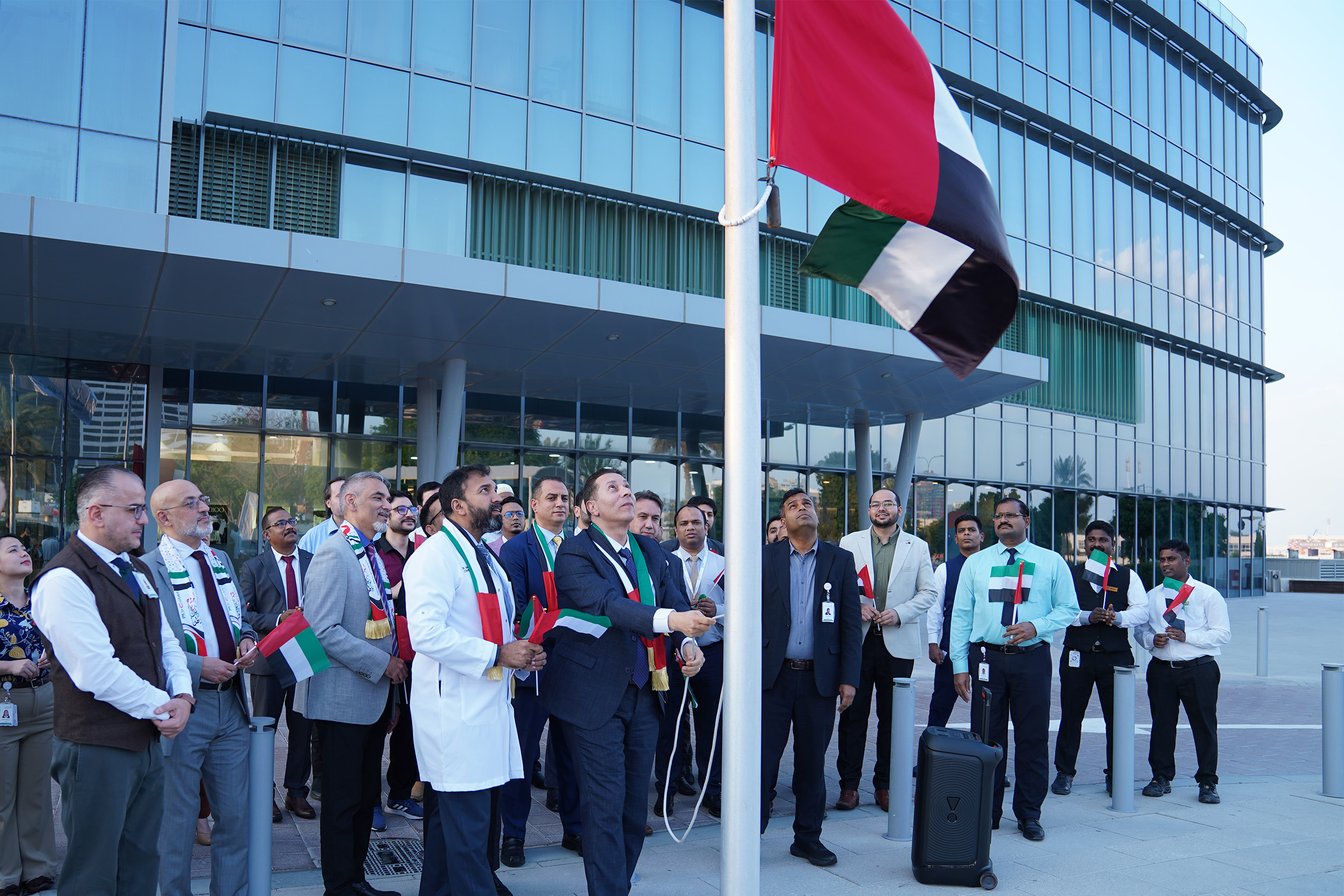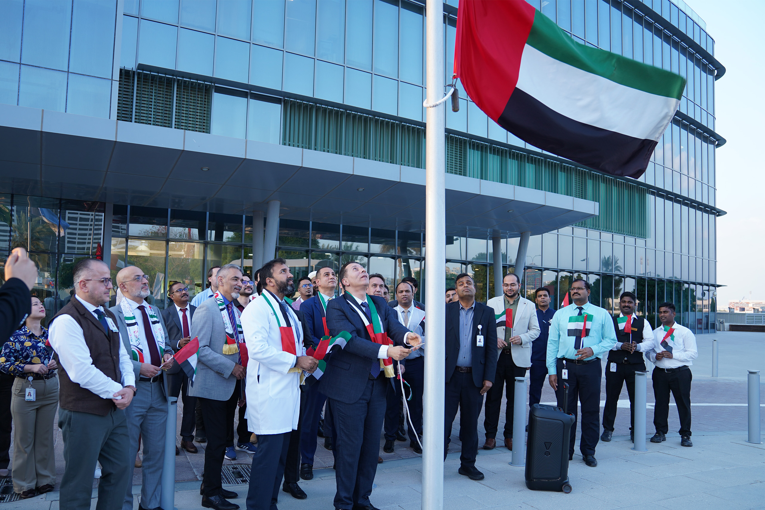 ومع ارتفاع علم الإمارات عاليًا، يظل مصدر إلهام لنا لمواصلة خدمة مجتمعنا بكل تفانٍ وفخر.