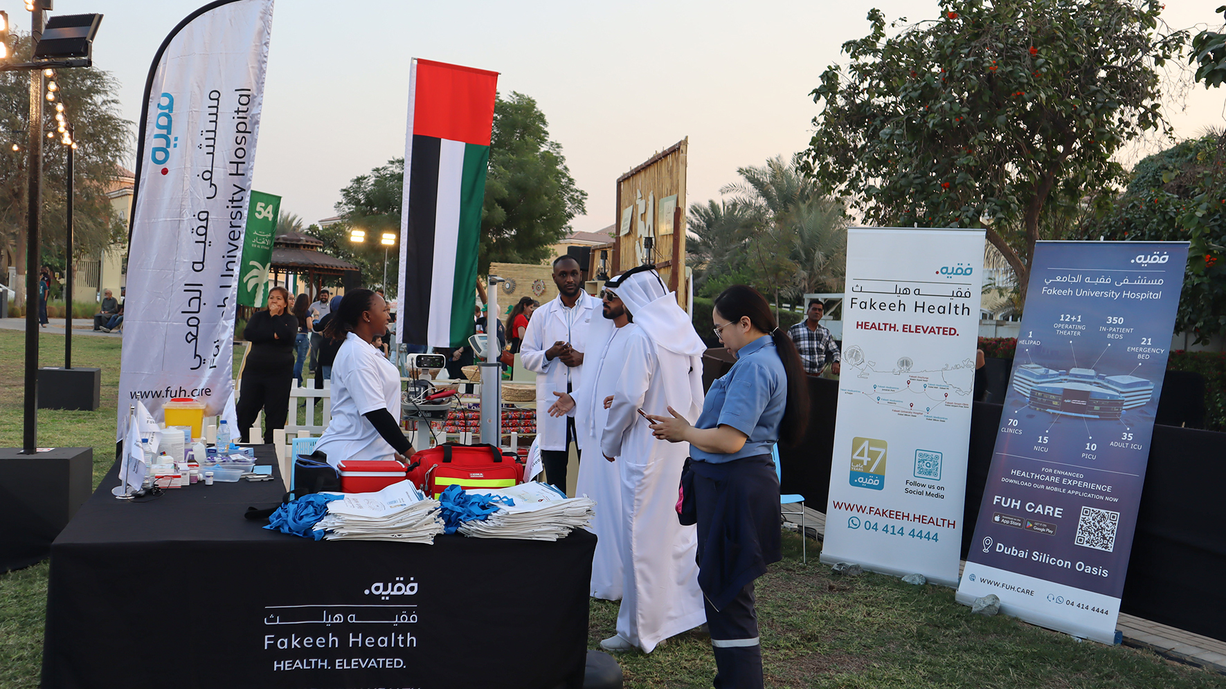 شاركت فقيه ميدي سنترز بفخر كـ فريق الدعم الطبي الرسمي خلال احتفالات اليوم الوطني التي أقيمت في حديقة نخيل المجتمعية. وقد جمع هذا الحدث العائلات والمقيمين وأفراد المجتمع للاحتفال بإرث دولة الإمارات العربية المتحدة ووحدتها وفخرها الوطني.