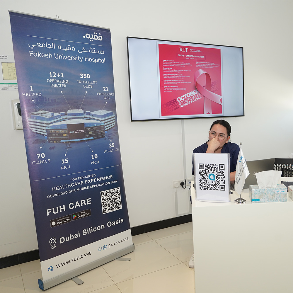 في إطار شهر التوعية بسرطان الثدي (بينكتوبر)، نظّمت فقيه للرعاية الصحية بفخر استشارة صحية مجانية في معهد روتشستر للتكنولوجيا (RIT دبي) الكائن في واحة دبي للسيليكون.