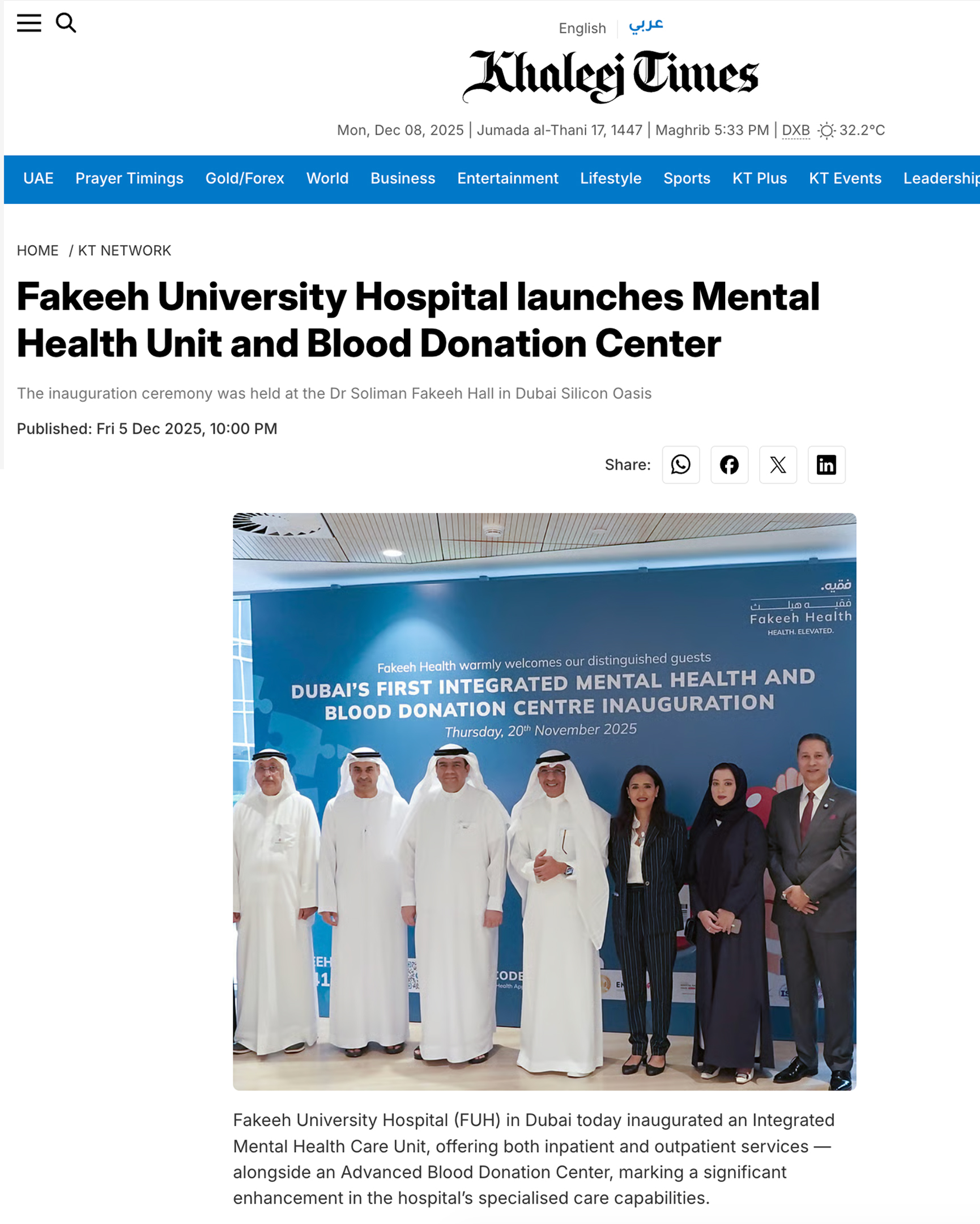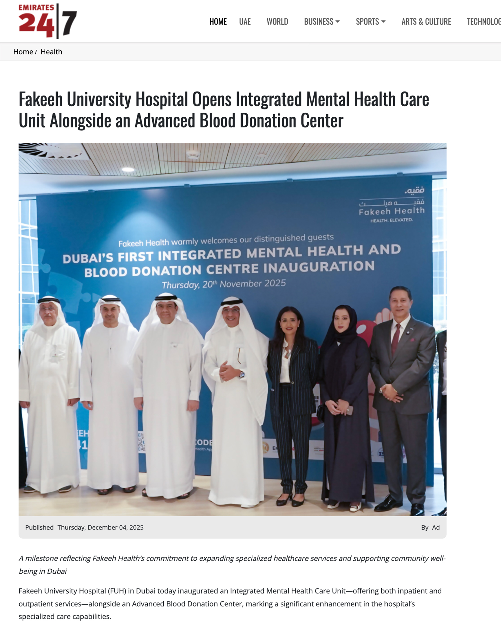 Fakeeh University Hospital proudly announces the inauguration of Dubai’s first Integrated Mental Health and Blood Donation Centre, a groundbreaking initiative that unites two essential pillars of community health under one roof.